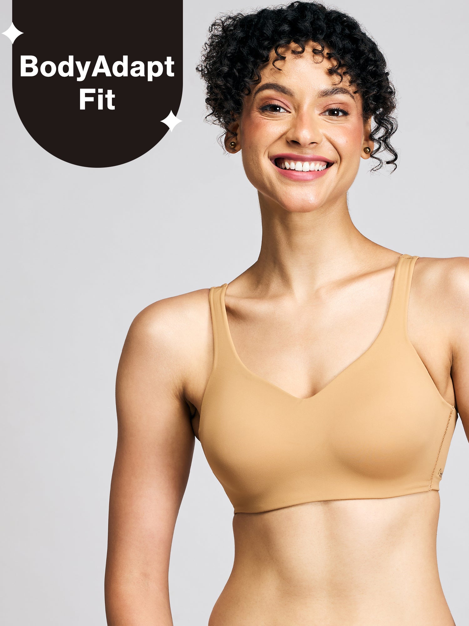 No more fixing your bra all day. With 360° Stretch Body Adapt Technology, the bra fits you not the other way around. It flexes with your body’s natural size changes, so it never feels too tight or too loose. Plus, its hardware-free construction gives you a rash-free, irritation-free experience for smooth, all-day comfort.