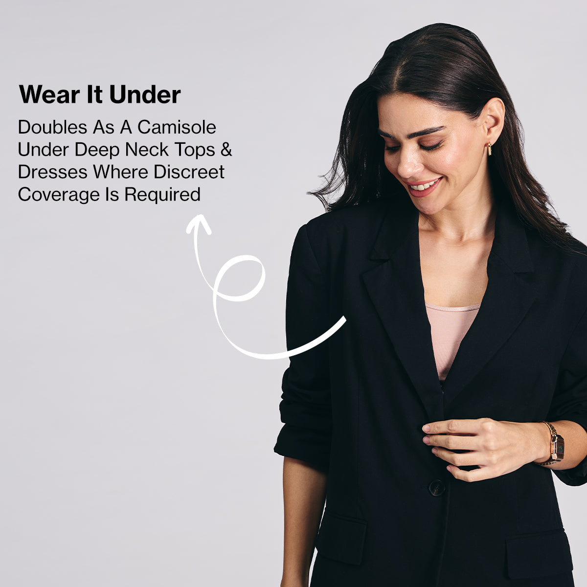 T-shirts, tops, kurtas, dresses, and everyday layers. Doubles as a camisole under deep neck tops and dresses where discreet coverage is required