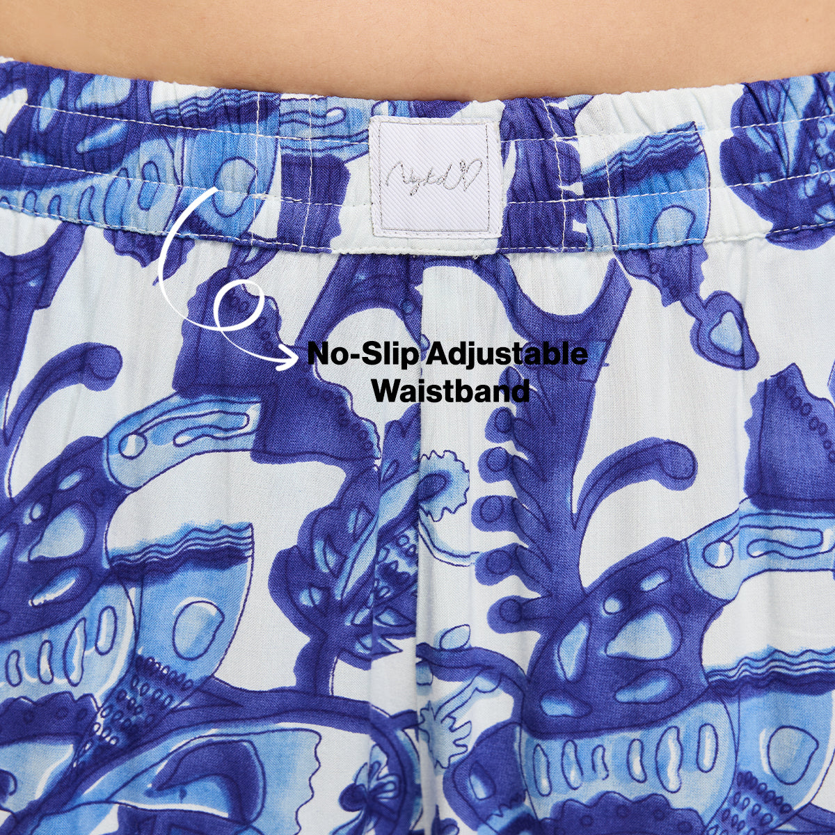 NYKD BY NYKAA BREEZY RAYON PYJAMA COORD SET WITH FLATTERING HIGH LOW HEM TOP NYS933 BLUE
