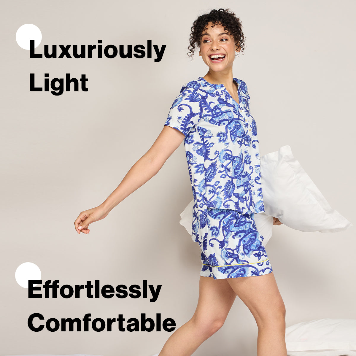 Designed to be your go-to this season, these shorts coord set feature unique, eye-catching prints in must-have colors that add a playful edge to your wardrobe. Made from breathable 100% rayon woven fabric, they keep you cool and comfortable throughout the day. The relaxed fit ensures ease of movement, high low hem provides a comfortable coverage & the short 's length is designed to stay in place without riding up.