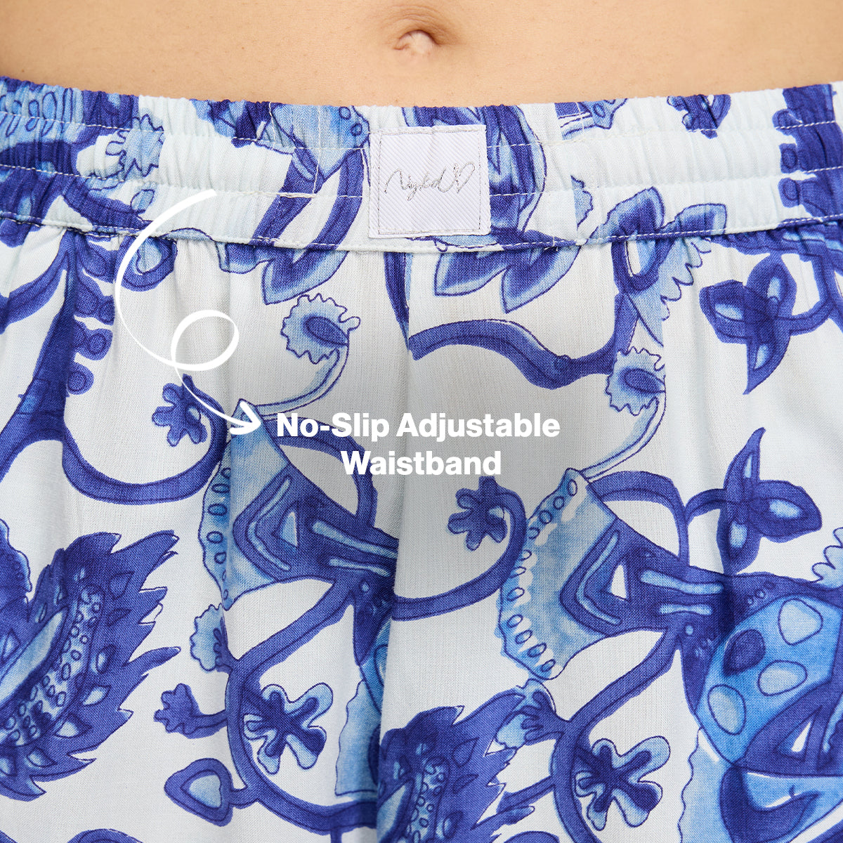 NYKD BY NYKAA BREEZY RAYON SHORTS COORD SET WITH FLATTERING HIGH LOW HEM TOP NYS930 BLUE