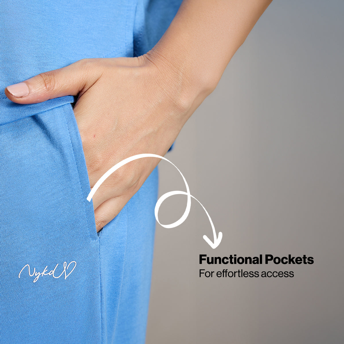 NYKD BY NYKAA BUTTERY SOFT MODAL COTTON PYJAMA COORD SET WITH ROUND NECK GRAPHIC TEE NYS932 BLUE