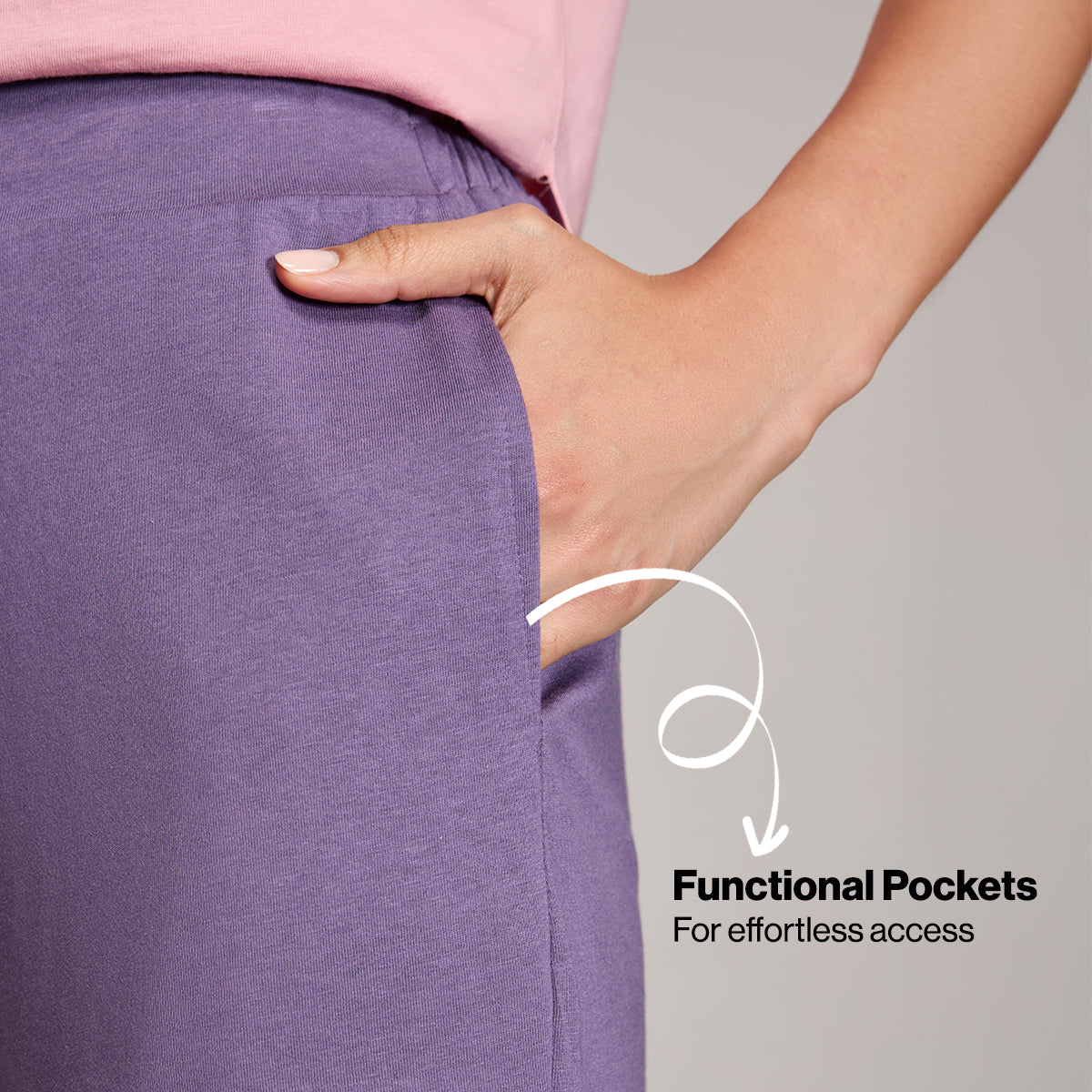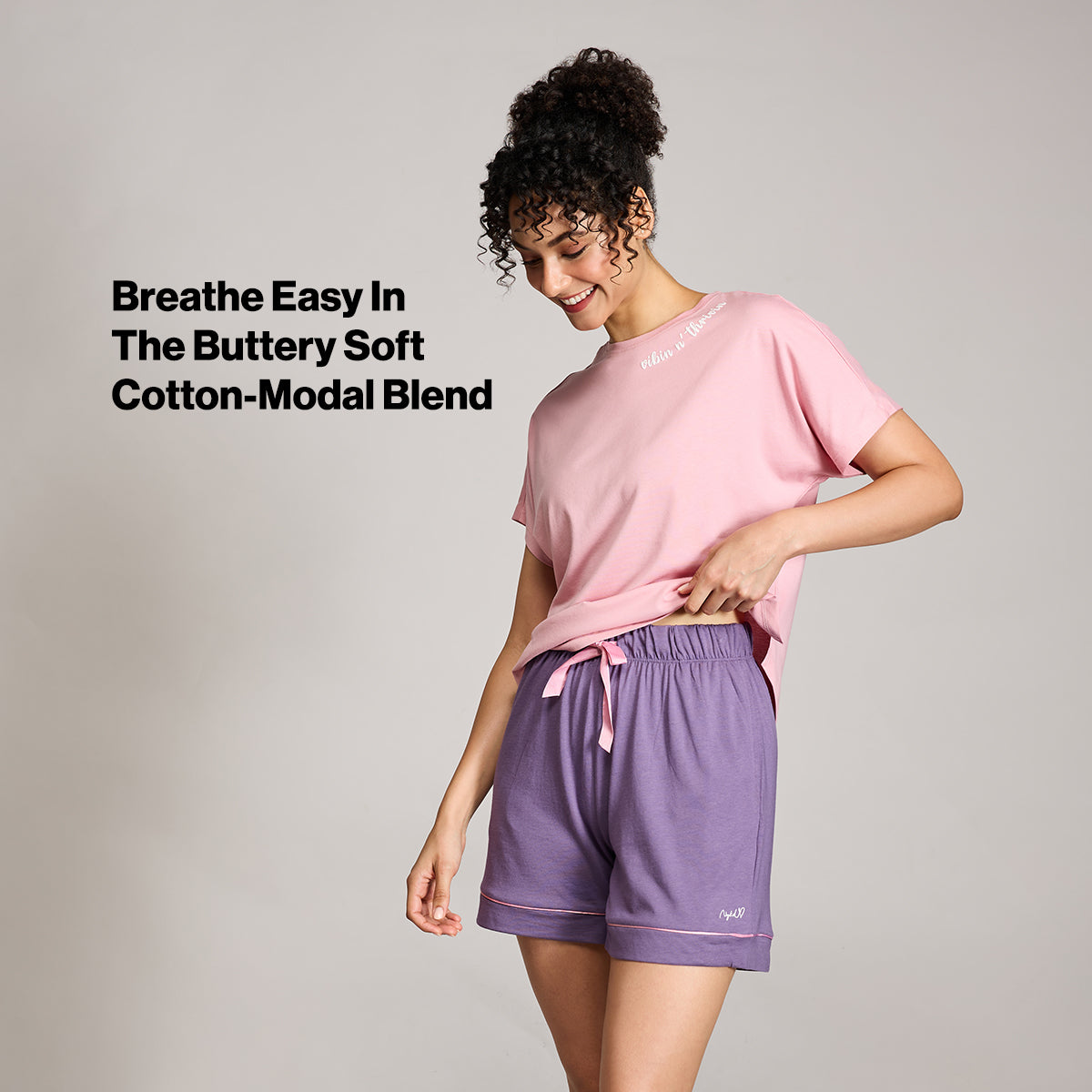 NYKD BY NYKAA BUTTERY SOFT MODAL COTTON SHORTS WITH CLEAN ELASTICATED WAIST & POCKETS NYS912 PURPLE