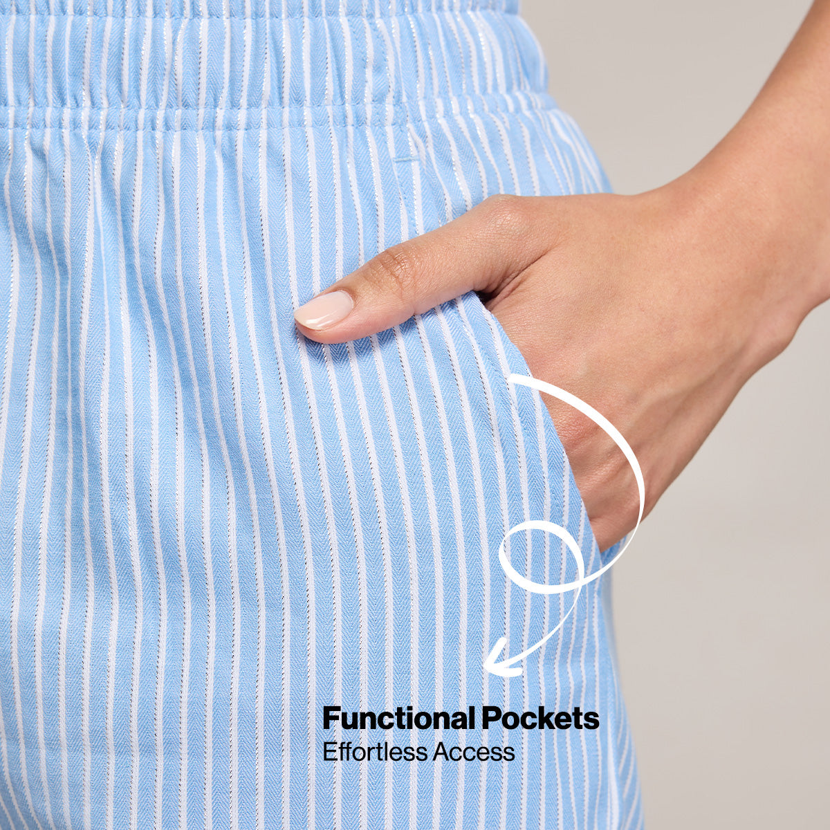 Comfy Cotton Shorts in Relax Fit-NYS914-Blue Stripe