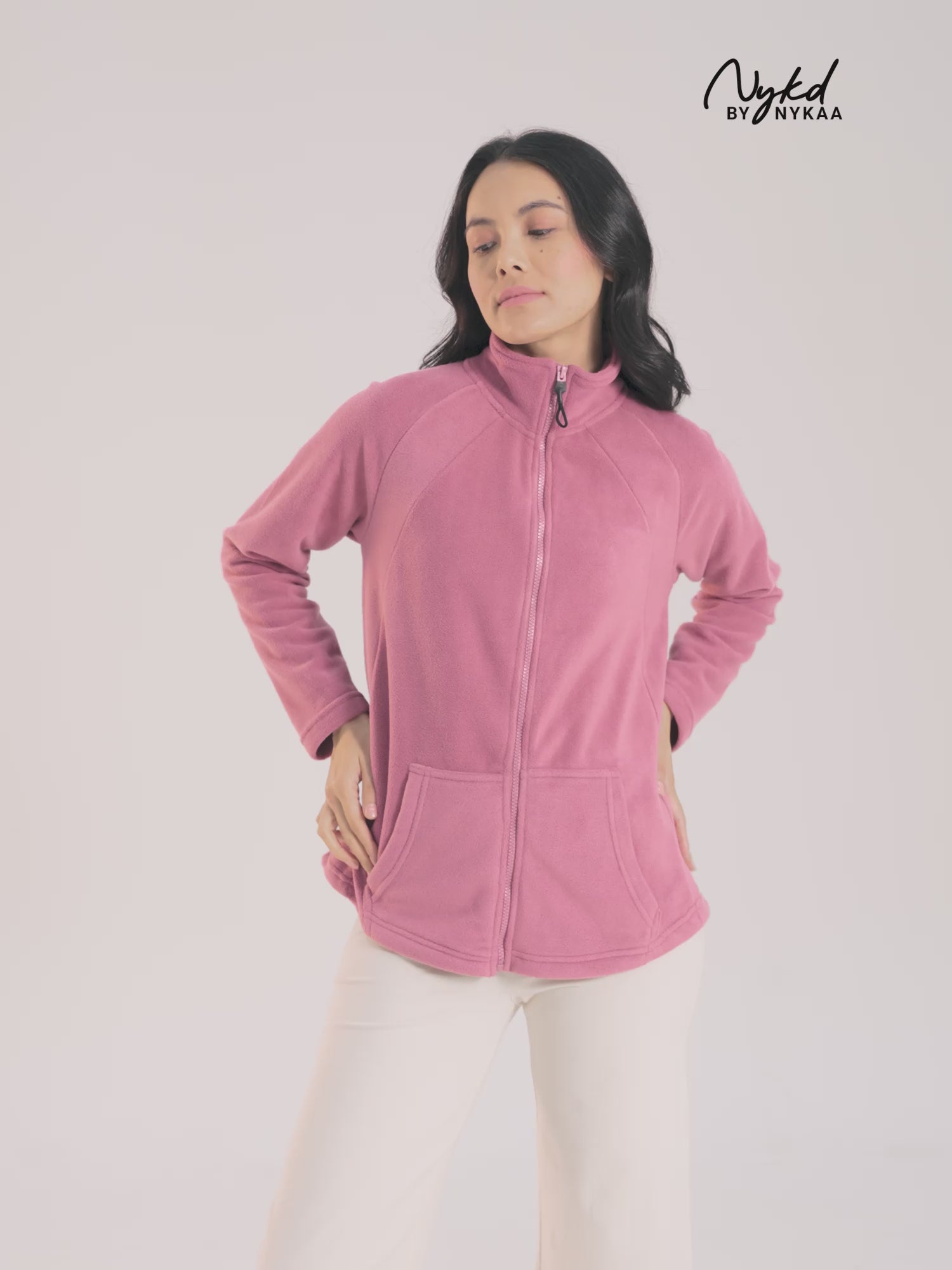 Cozy Sherpa Jacket with Zippered Front-NYLE701-Pink
