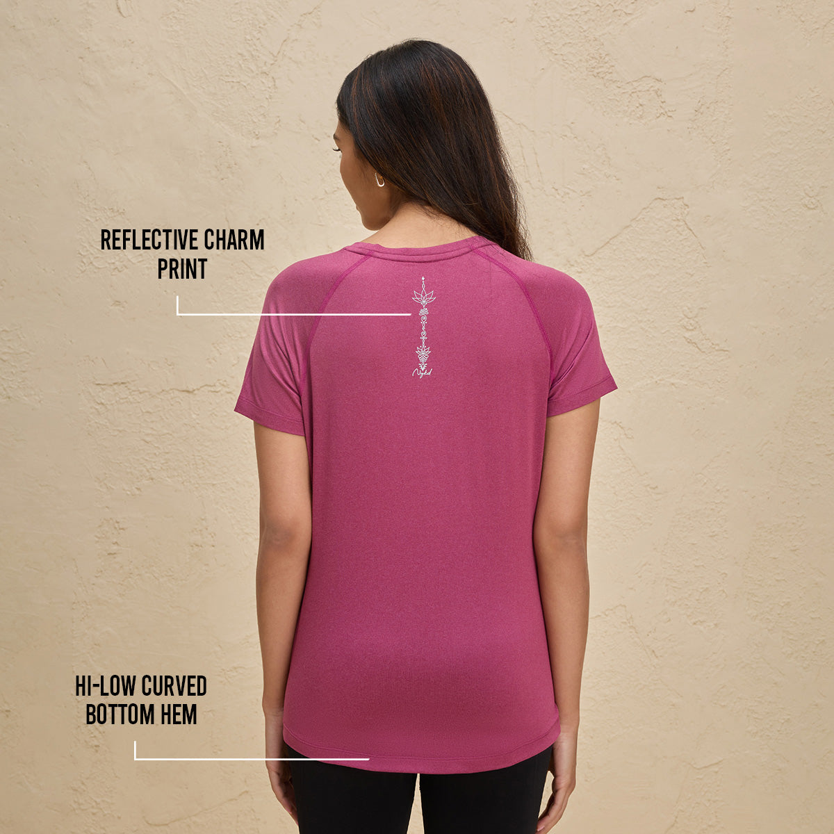 Introducing our UV running tee – the perfect companion for your active lifestyle! Designed with raglan sleeves and ergonomic seams, it ensures maximum comfort during workouts. Made from quick-drying and UV protection fabric with a reflective charm print, this ultra-soft melange tee is lightweight and stylish, it's guaranteed to enhance your workout experience. Get ready to feel good, look good, and conquer your fitness goals!