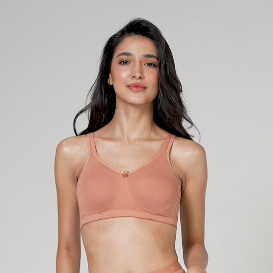 Full Support & Comfort: Side smoothening wings, wire-free design, and fabric straps for a no-dig experience.