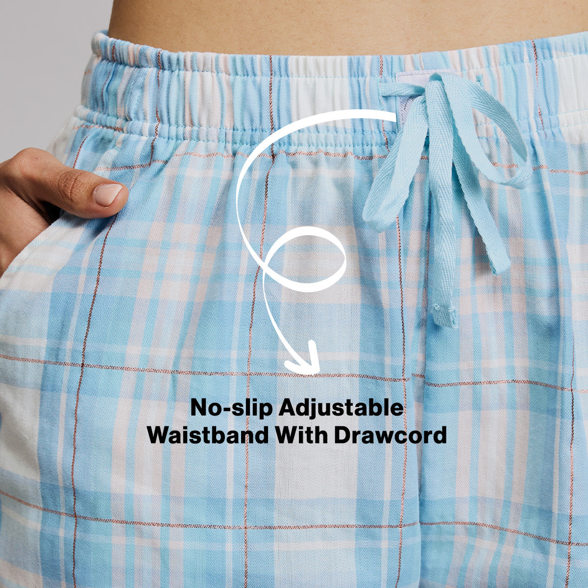 The soft, stretch tee pairs beautifully with woven cotton shorts, offering a regular fit that feels just right. Tried and loved by 100 women, these shorts are the perfect length—no riding up, just pure ease. The adjustable waistband with a drawstring ensures a relaxed fit, tailored just for you.