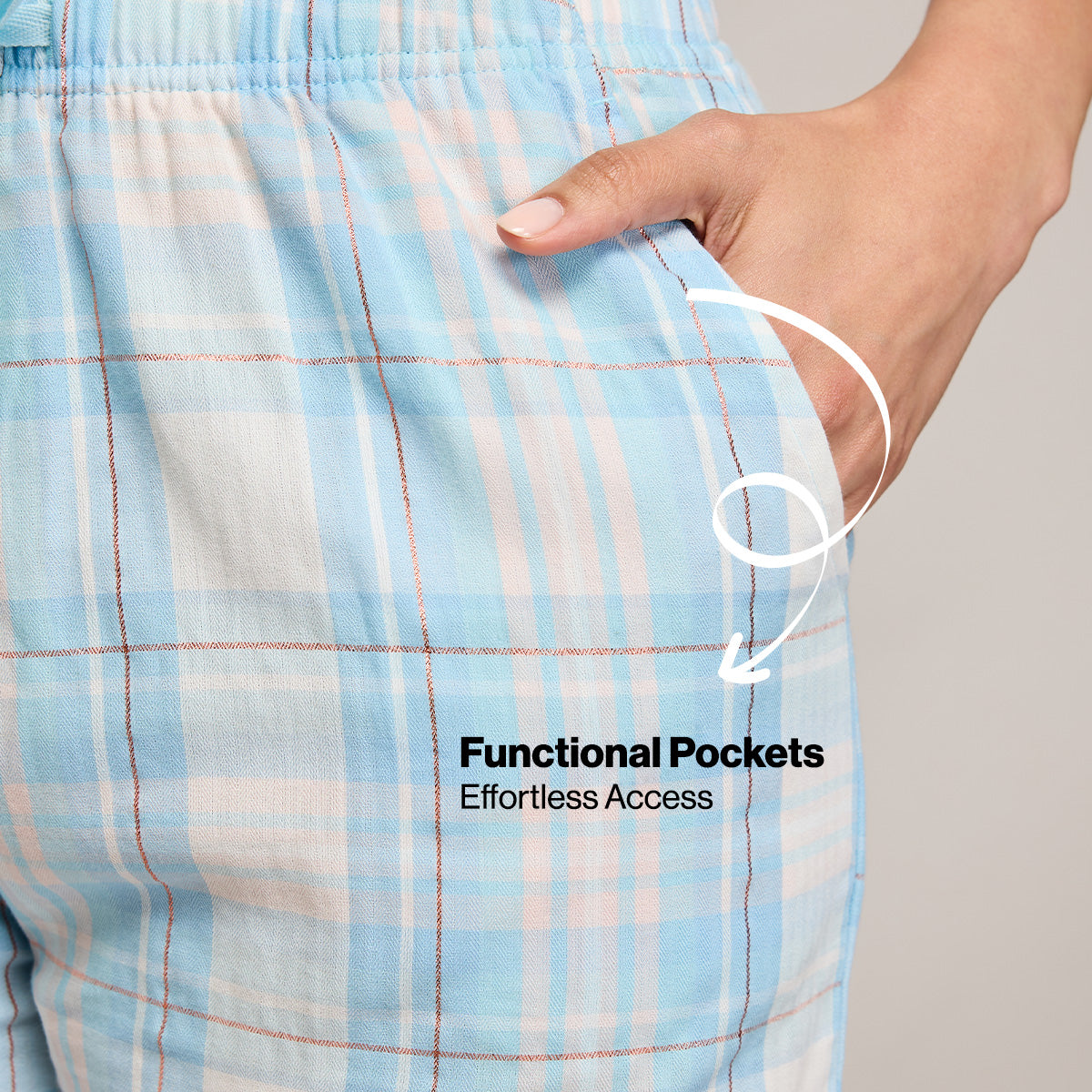 Nykd By Nykaa Essential Cotton Shorts With Pockets & Adjustable Waist Nys914 Blue Peach Check