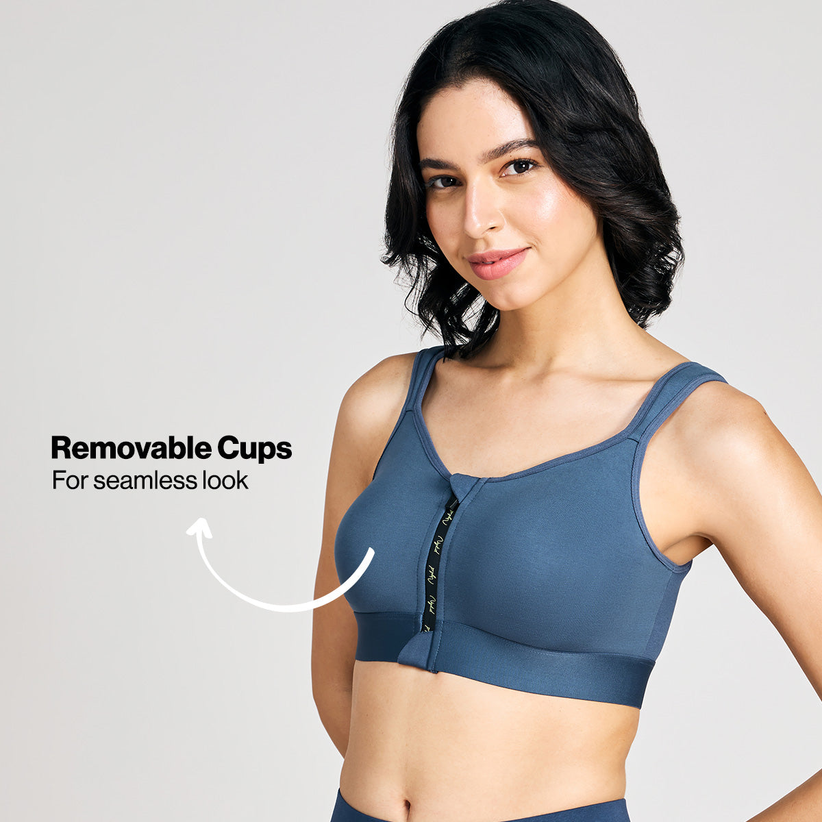 Full Coverage Front Open High Impact Posture Correcting Sports Bra-NYK907-Blue