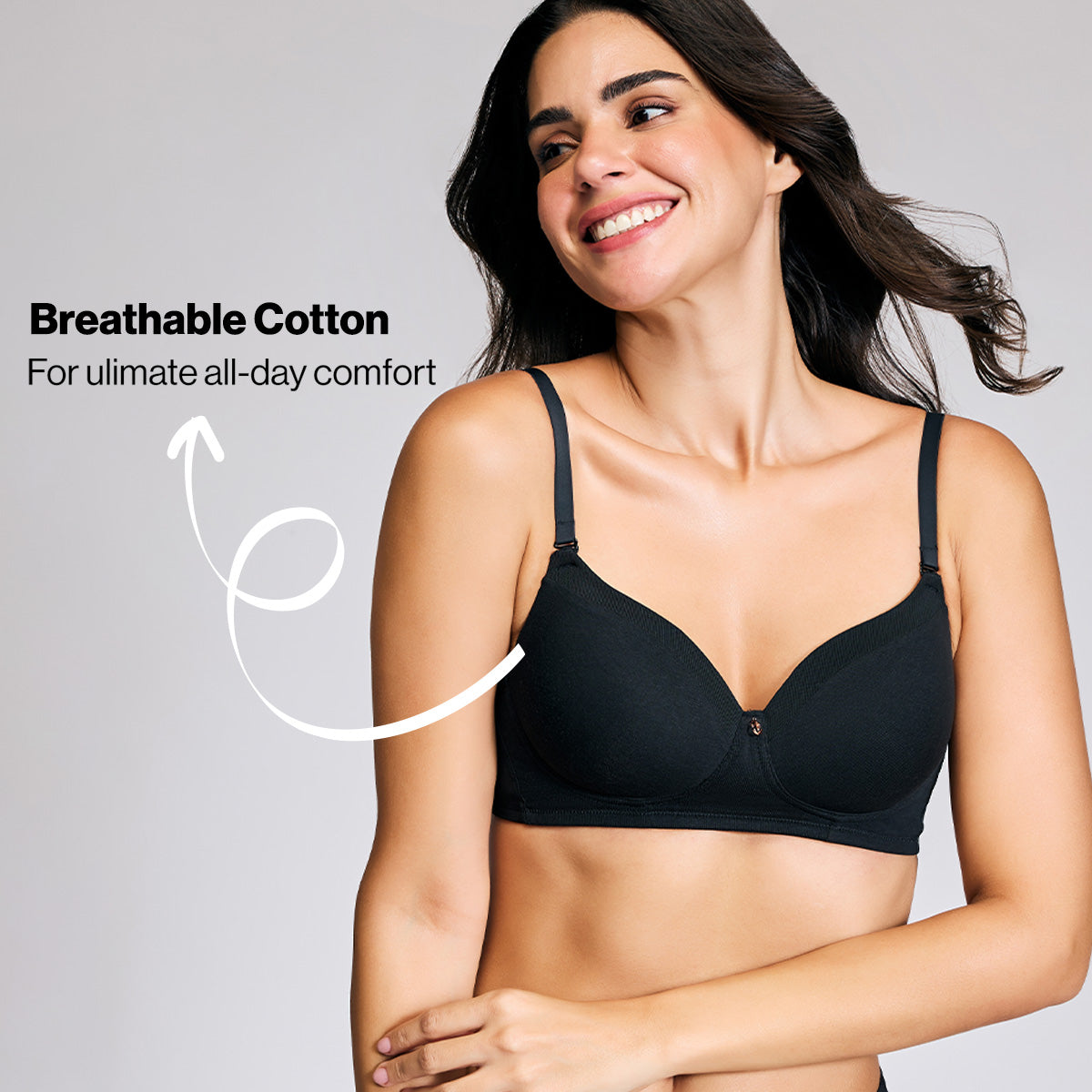 Nykd By Nykaa Iconic Cotton Low Back Padded Non-Wired 3/4th Coverage T-shirt Bra NYB252 Black