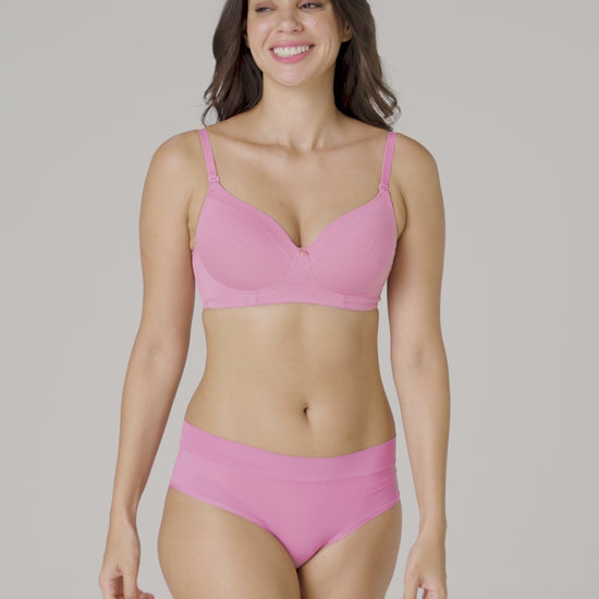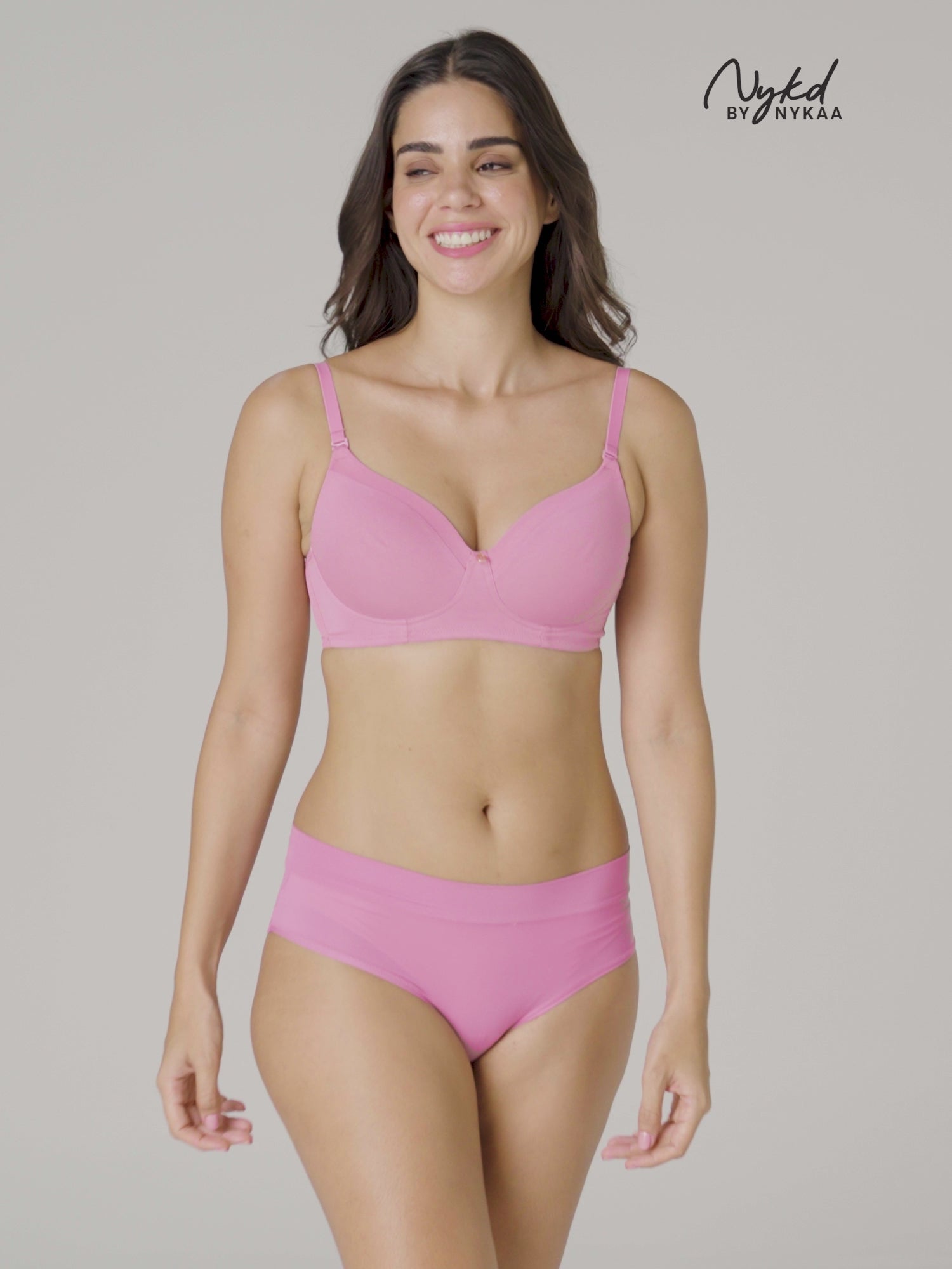 Nykd By Nykaa Iconic Cotton Low Back Padded Non-Wired 3/4th Coverage T-shirt Bra NYB252 Blush
