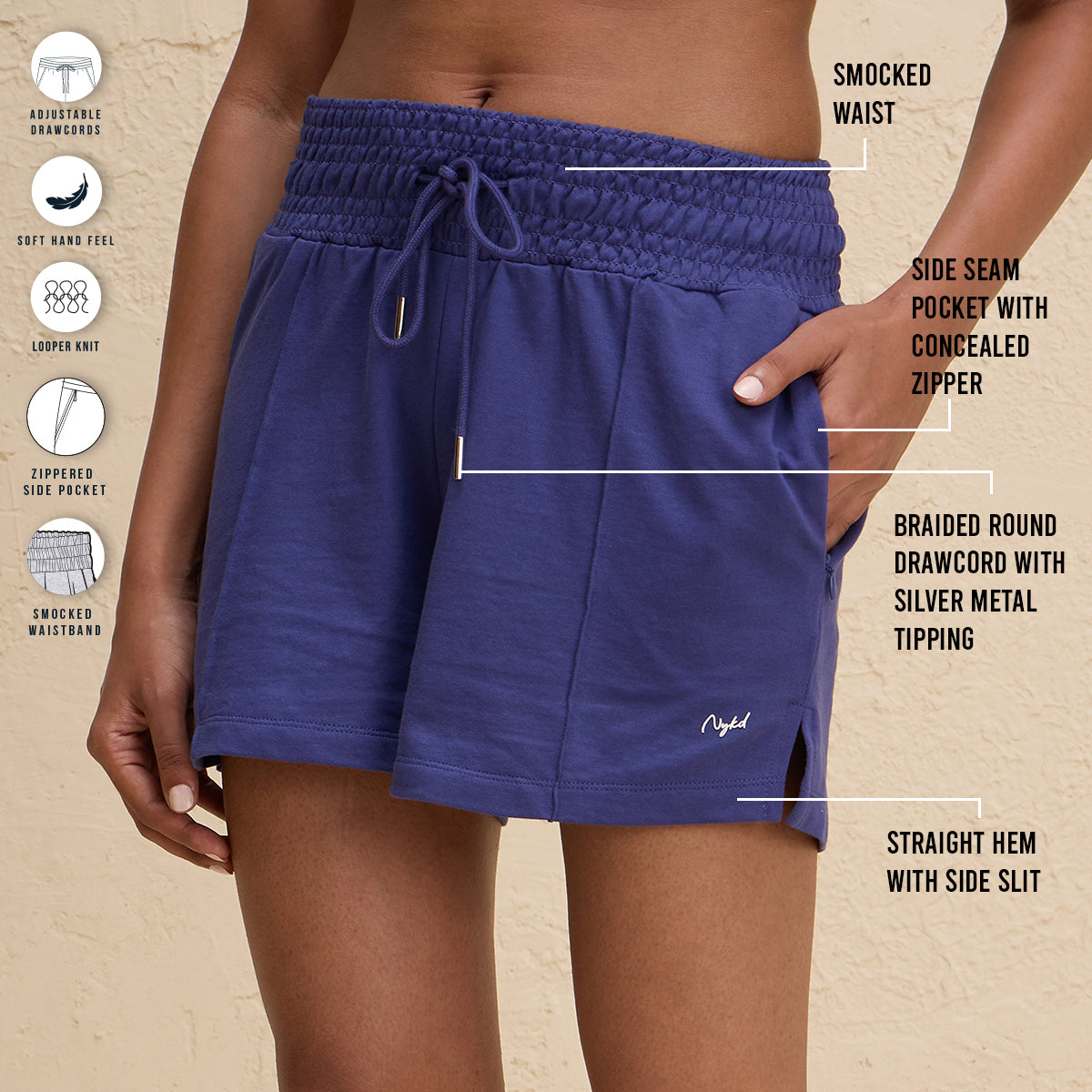 Introducing our ultra- comfy smocked lounge shorts that feel like dream to wear! Crafted from ultra comfortable and breathable- Looper knit Cotton fabric, these shorts are lightweight and stylish, perfect for all- day comfort.