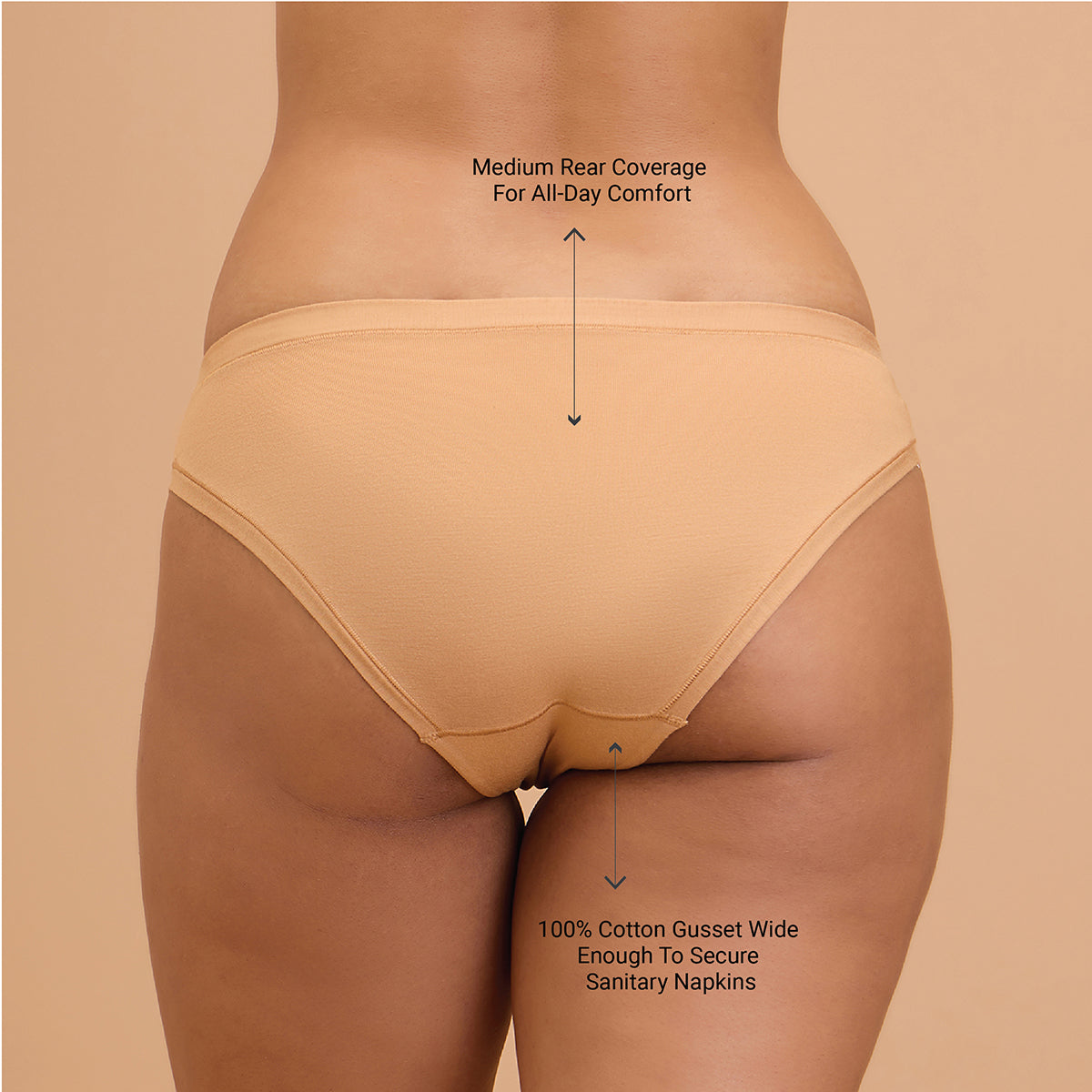 Our signature, buttery-soft bikini panty is made with premium Modal. It is specially designed with luxurious construction with a no-dent, high-stretch waistband and elastic-free legs for distraction-free movement. This ultra breathable, super absorbent, sustainable fabric caresses you like second skin!