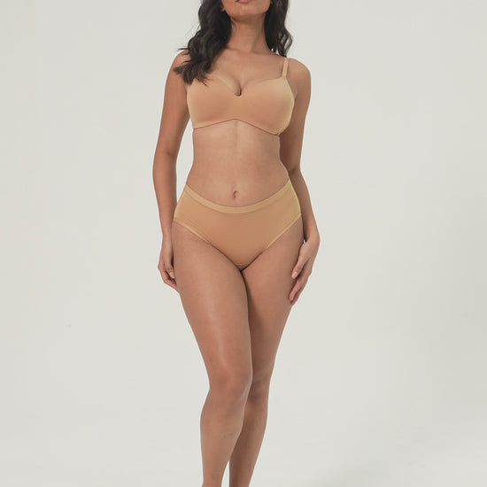 Our signature, buttery-soft hipster panty is made with premium Modal. It is specially designed with luxurious construction with a no-dent, high-stretch waistband and elastic-free legs for distraction-free movement. This ultra breathable, super absorbent, sustainable fabric caresses you like second skin!