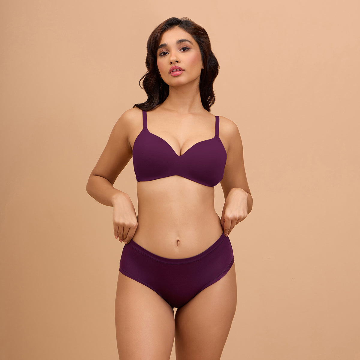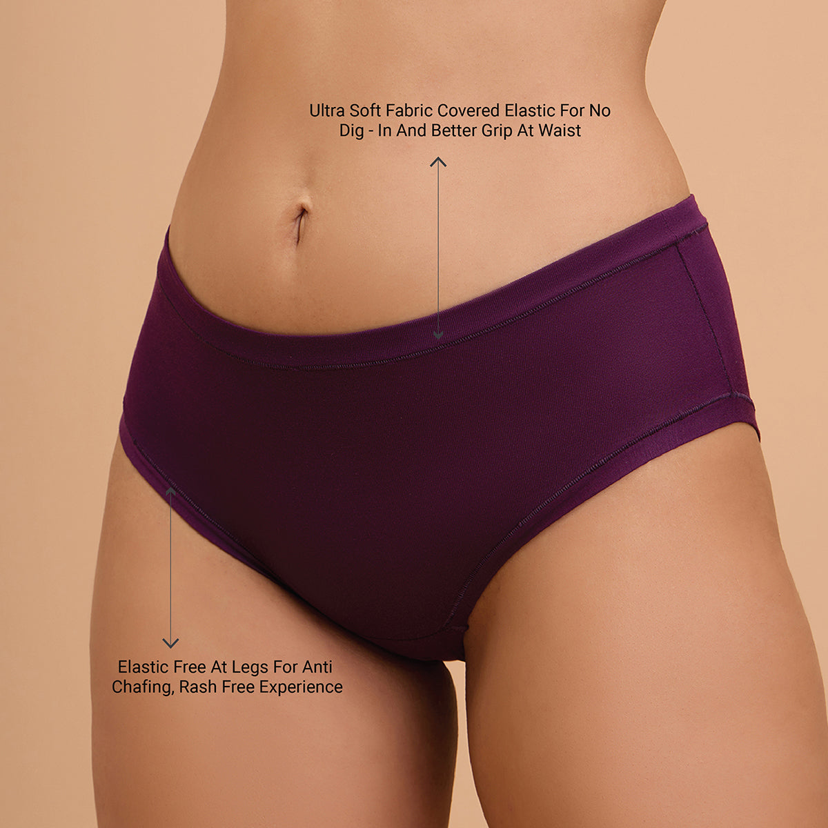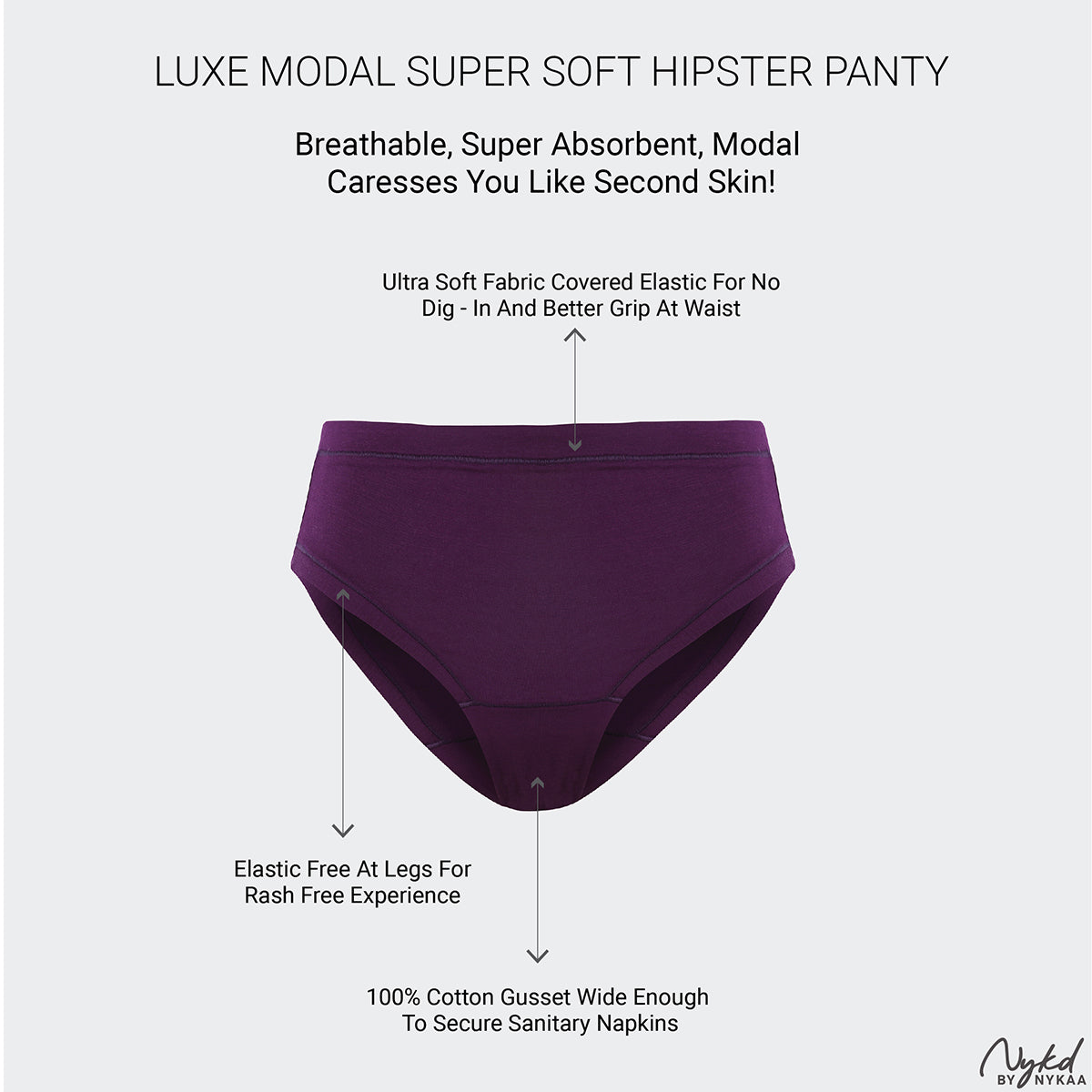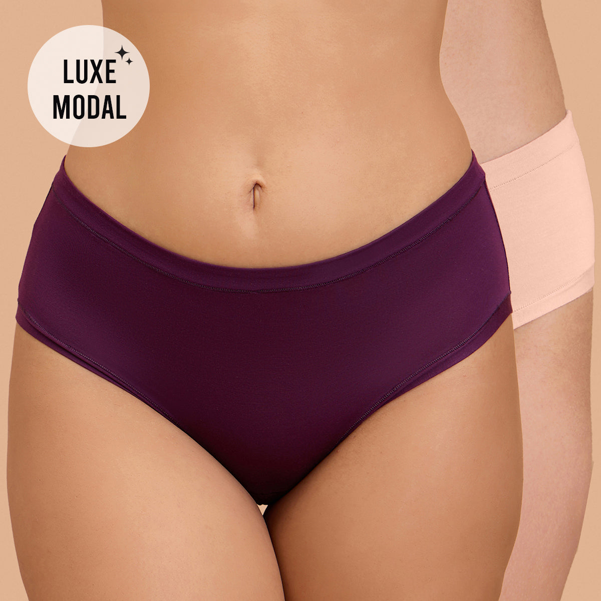 Nykd by Nykaa Super Soft Luxe Modal Hipster Panty NYP383 PO2-Nude & Eggplant