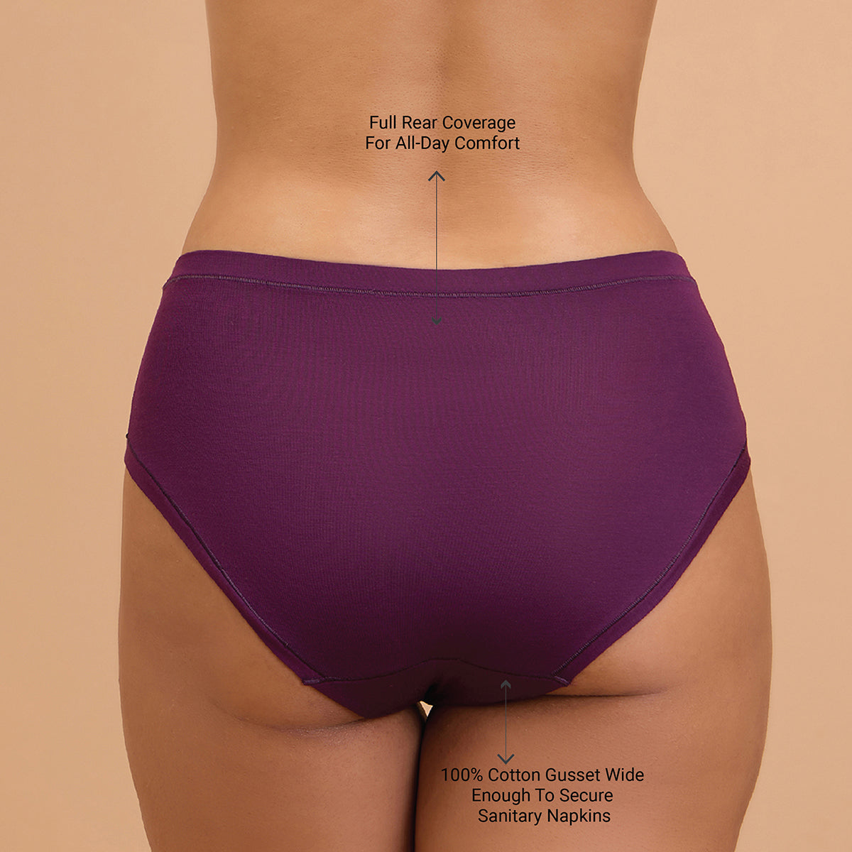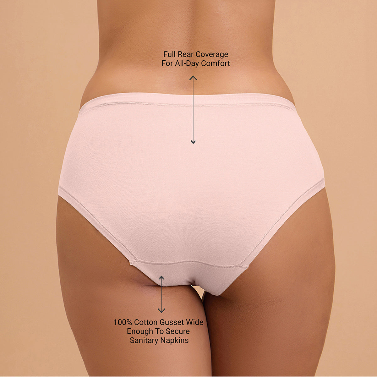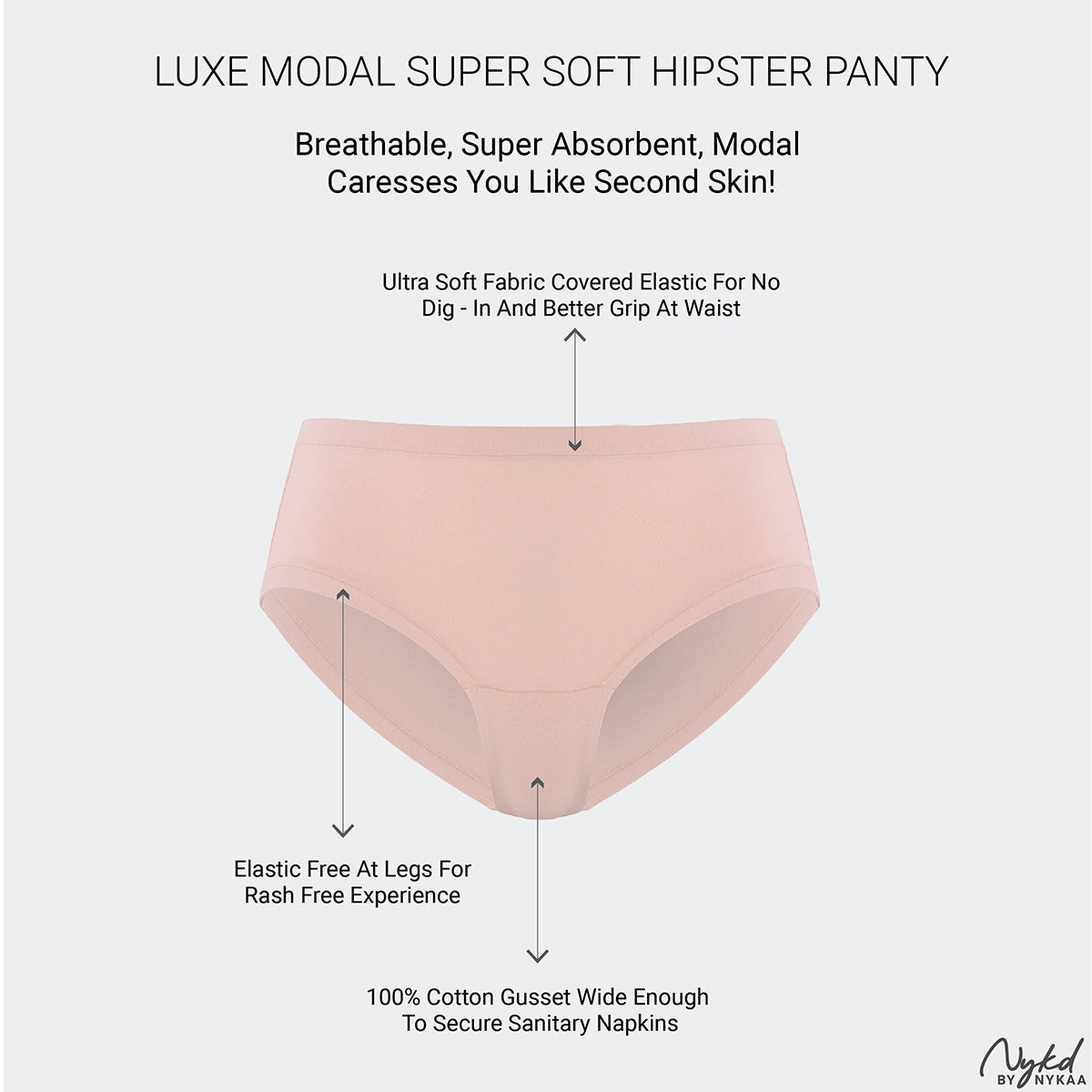 Our signature, buttery-soft hipster panty is made with premium Modal. It is specially designed with luxurious construction with a no-dent, high-stretch waistband and elastic-free legs for distraction-free movement. This ultra breathable, super absorbent, sustainable fabric caresses you like second skin!