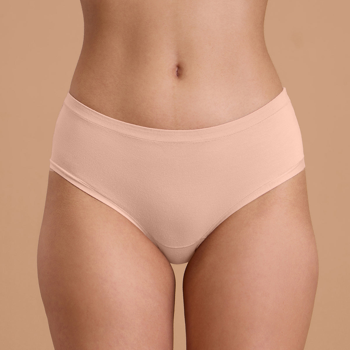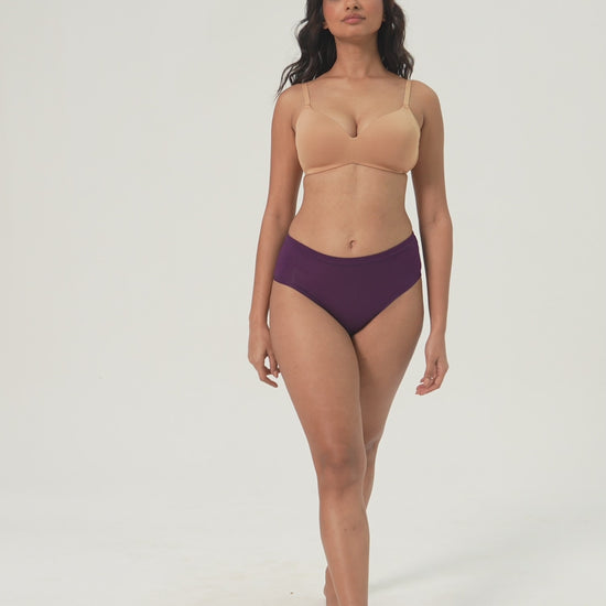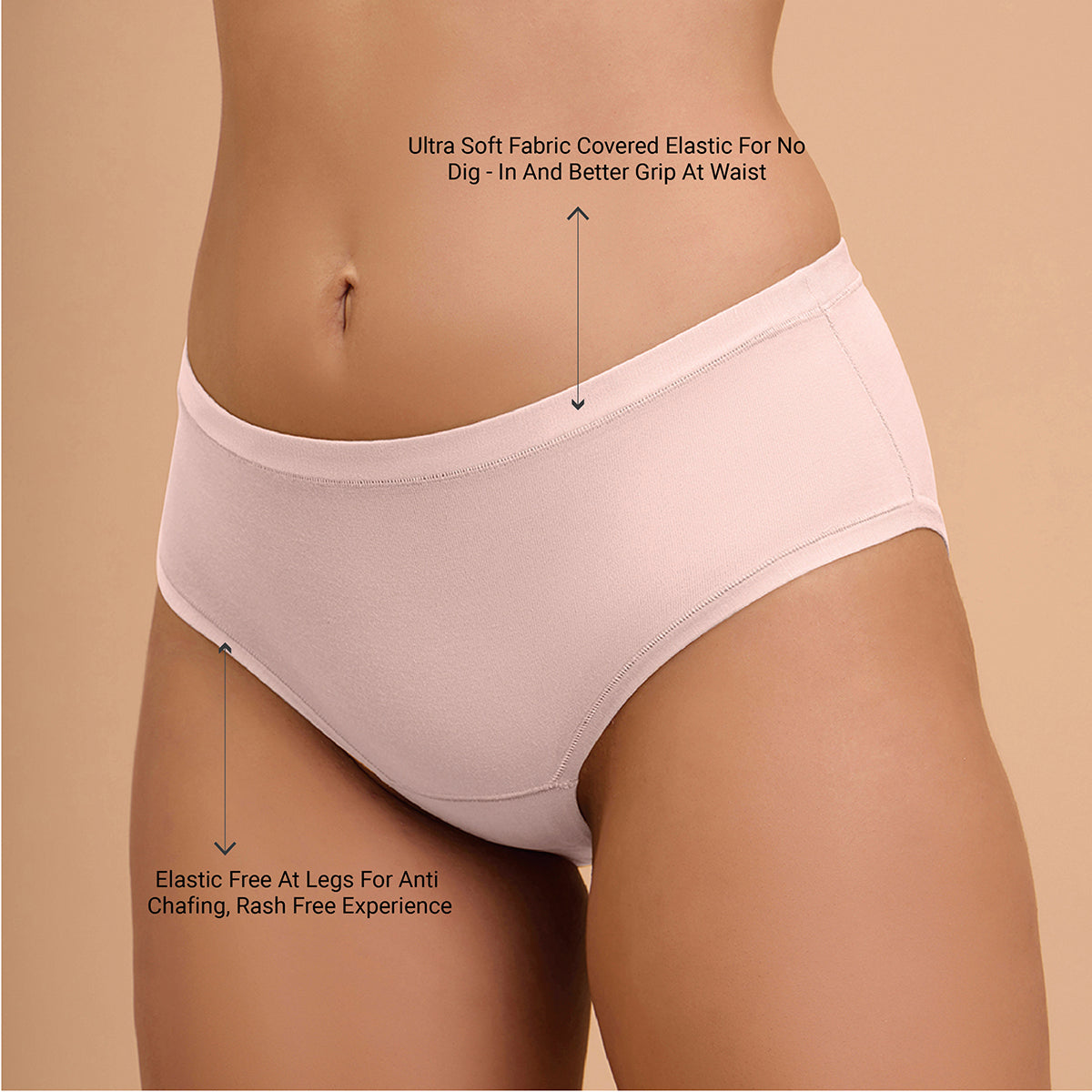 Our signature, buttery-soft hipster panty is made with premium Modal. It is specially designed with luxurious construction with a no-dent, high-stretch waistband and elastic-free legs for distraction-free movement. This ultra breathable, super absorbent, sustainable fabric caresses you like second skin!