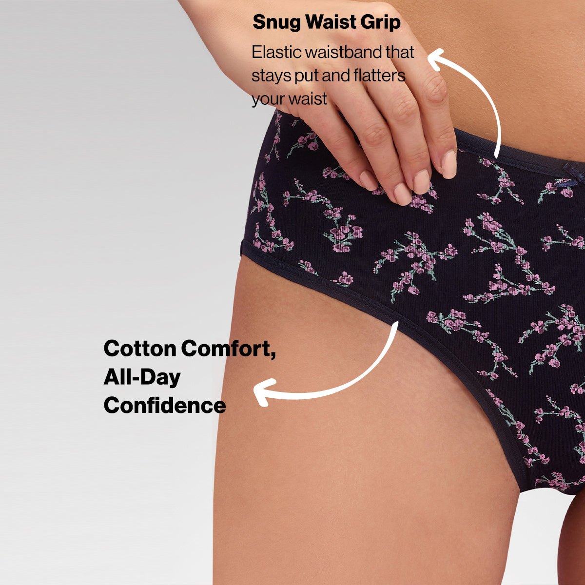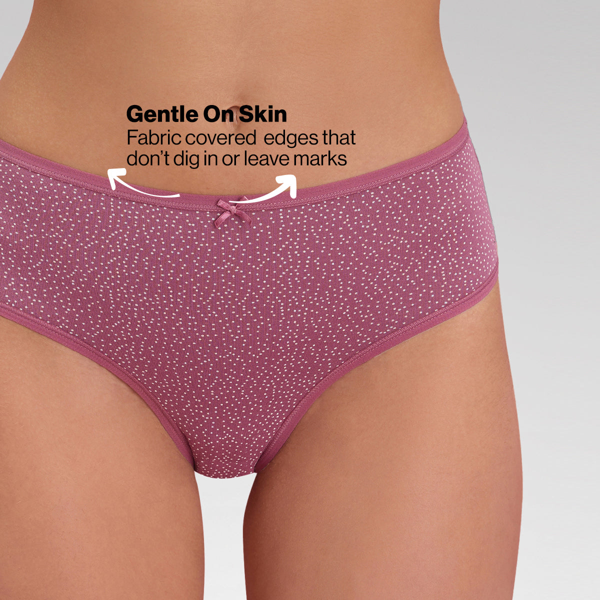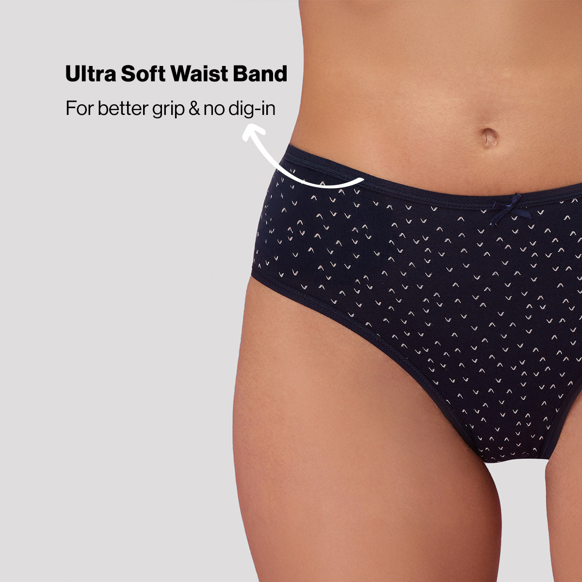 All eyes on this print, meet the mid rise hipster panty- your everyday favourite.Crafted with anti-odour finish and super soft breathable cotton, it has an exposed elastic for a defined waist illusion and better grip.Bottoms up girl, cause comfort looks good on you!Details you'll love:- Mid Rise at the waist with medium rear coverage- Anti-odour finish in breathable cotton fabric- Super soft elastics- Exposed elastic at waist for a defined waist illusion & better grip- Comfy and stylish dailies in pretty & happy prints
