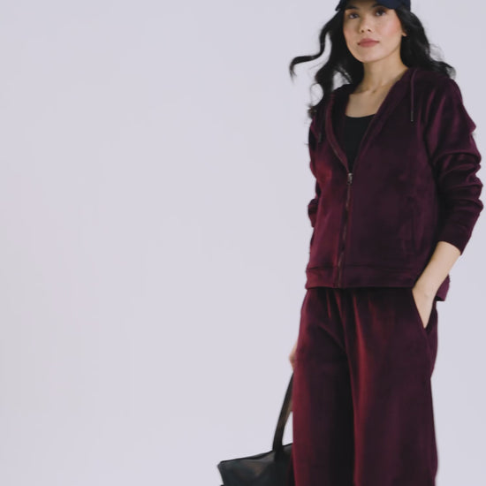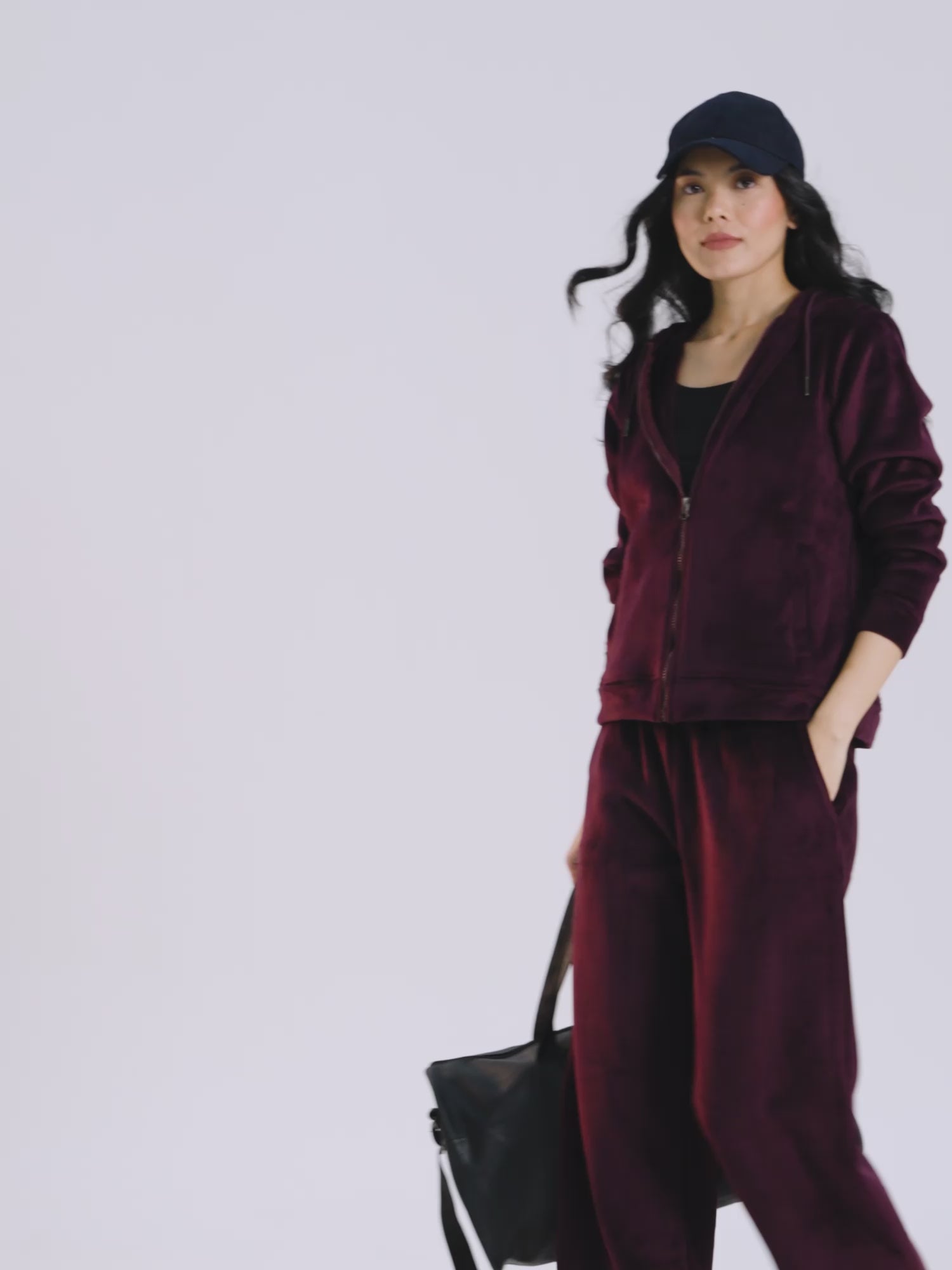 Luxe, velvety-soft textured velour fabric for a chic yet cozy feel