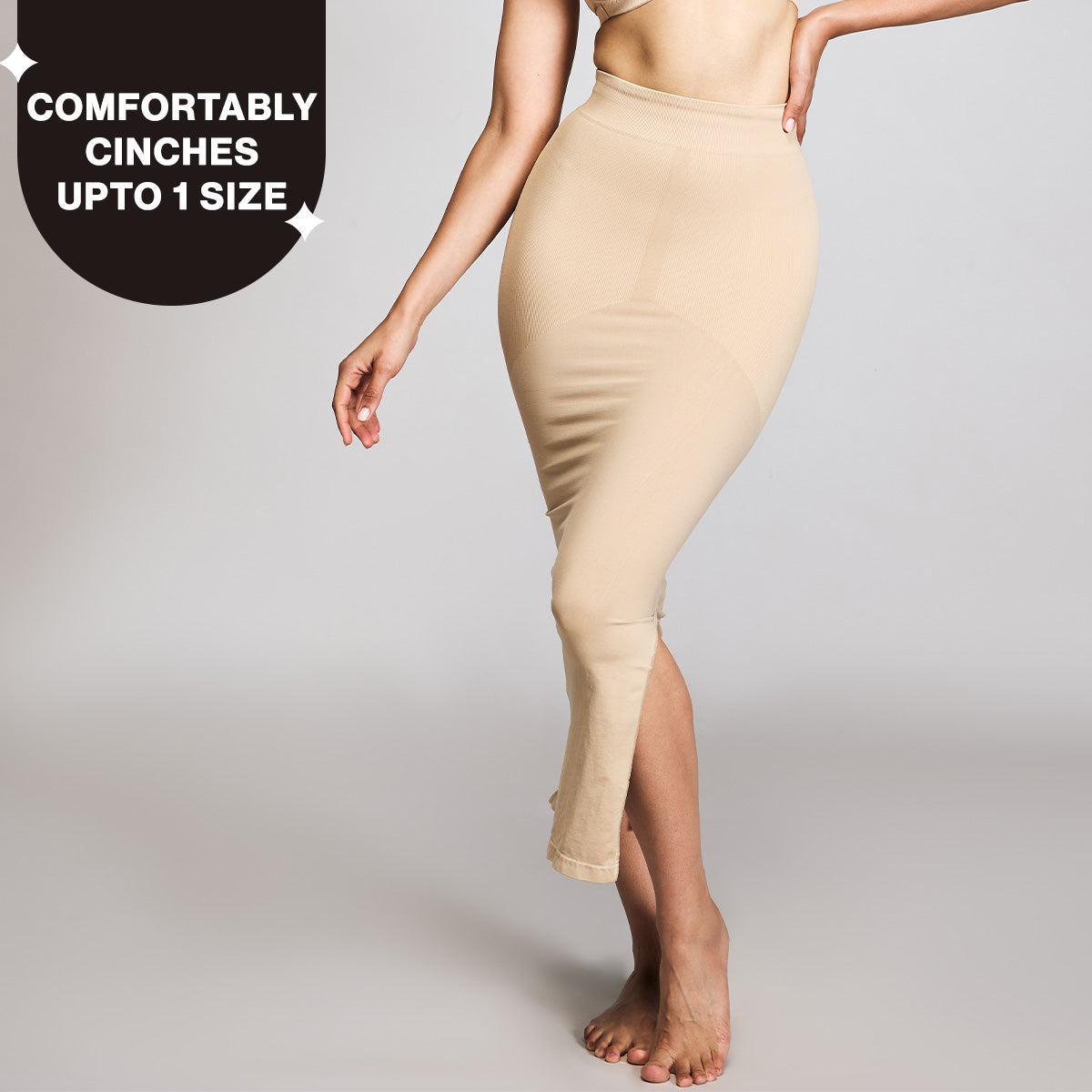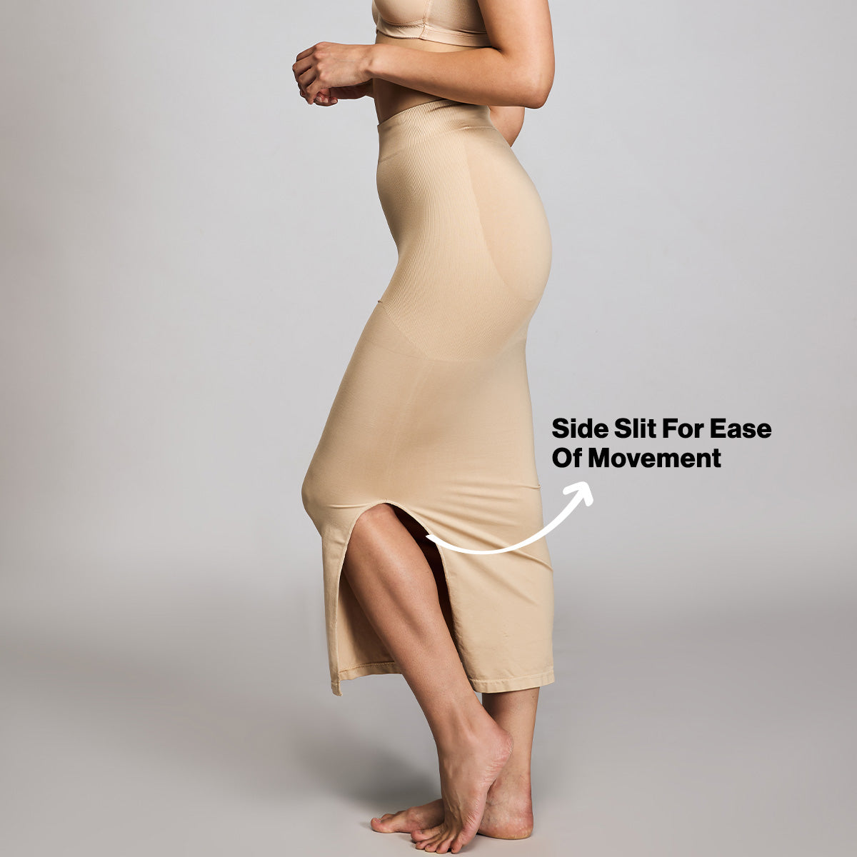 Designed with a focused compression on the side hip area that goes easy on the center to ensures a flattering silhouette and comfortable feel. The side slit provides ease of movement for walking and sitting. With this Nykd Saree Shaprewear, say no to muffin top and side bulges and say yes to a smooth and defined shape.