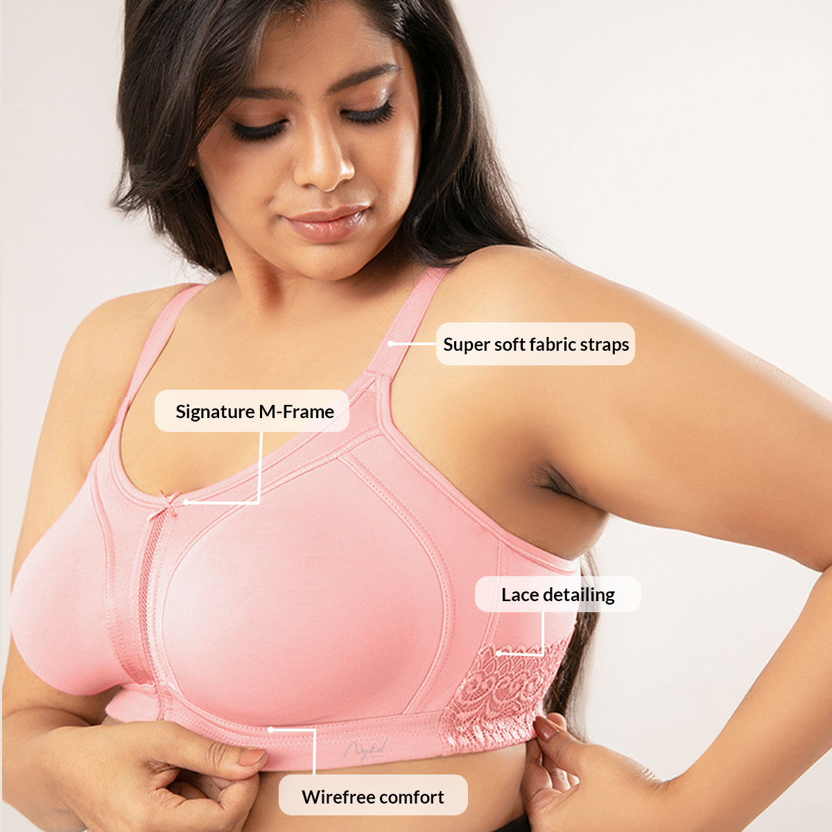 Nykd By Nykaa Everyday Cotton M-Frame Bounce Control Non-Padded Non-Wired Bra NYB101 Coral