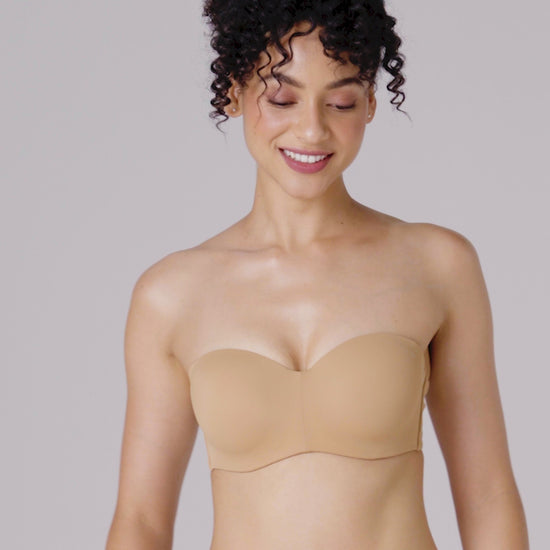 Finally, a strapless bra that stays put and stays comfortable. Designed for a secure, no-slip hold and a cushioned basque that reduces underbust pressure, this is comfort and support in one sleek style.